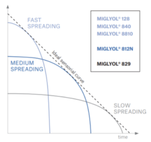 For topicals, MIGLYOL® 812 N is ideal as it falls within medium spreading on the sensorial curve and penetrates the upper skin layers easily due to it’s similarity to skin lipids.
