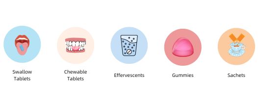 Product Applications: Chewable Tablet, DC Tablet, Effervescent, Gummies, Sachet, Tablet,